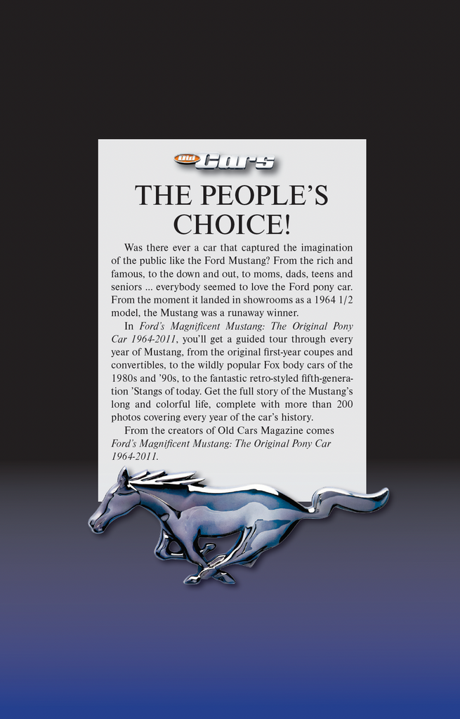 From the creators of Old Cars Magazine comes Ford’s Magnificent Mustang: The Original Pony Car 1964-2011.