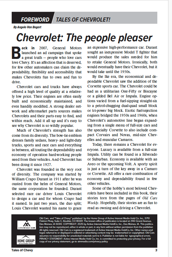 Tales of Chevy is a collection of Old Cars stories about those owners who love cars and